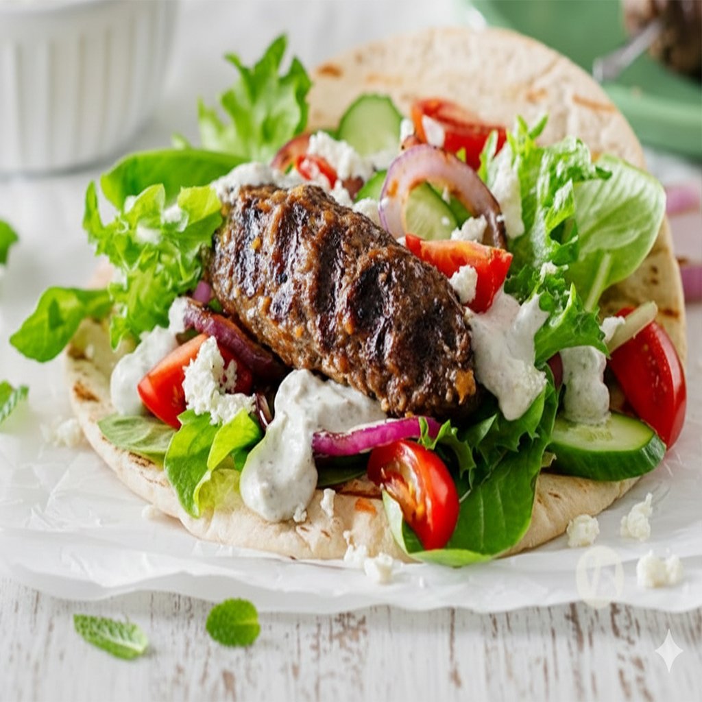 Loaded with onions, green peppers, sauteed mushrooms, lettuce, and tomato. Fresh and filling.